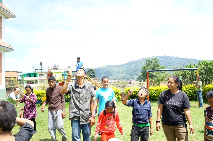 The curiosity filled children's eyes as they welcomed guests, but there was a welcoming smile and no alert. I gave a class, which I prepared myself from Korea. Even thought I couldn't communicate with children by language, I enjoyed the time. The most memorable moment was playing with bubbles in the field after greetings with students. It was awkward at first and hard to get close to them. However we all became friendly after having great time together. Even local teachers joined playing with bubble like children.