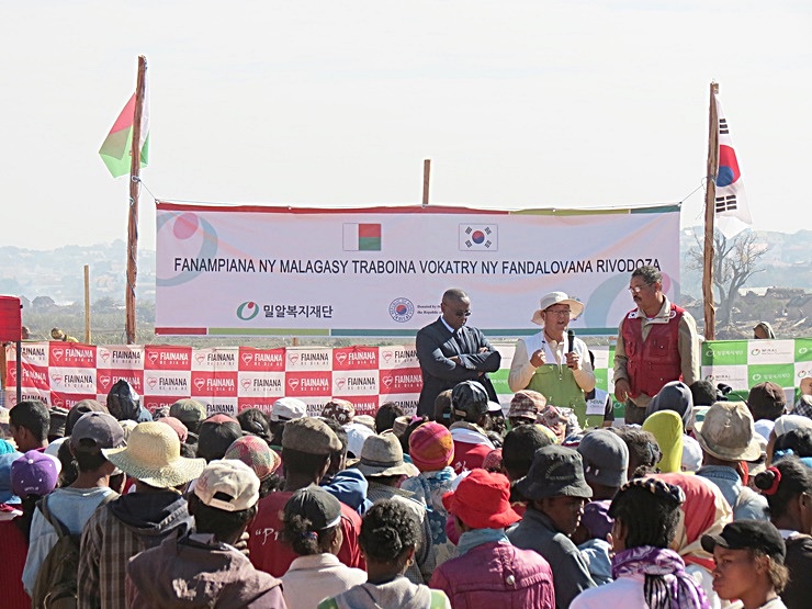As a result, in Analamanga district more than 40,000 people were put in malnutrition. To battle with this, Miral Welfare Foundation conducted emergency relief and KOICA (Korea International Cooperation Agency) financially supported them. On March people were given solar-powered lanterns, rice and clothes, and on 13th May relief items were provided in the four damaged villages. The relief distributed eight items including rice, bean, multi-vitamin and soap powder. On the date, every staff got excited as if they were preparing for a party. Marcel, one of the staff, was so happy that he was able to carry 50kg of rice pack very easily. Also local people volunteered to cooperate each other.