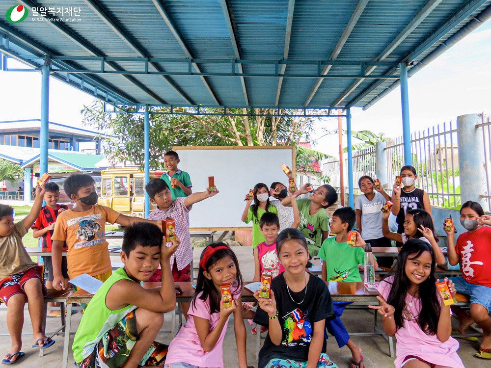 Over the past decade, the school lunch has become more delicious and nutritious through the support of the sponsors of Miral. Also, children has received colorful good notes and pencils which catch their fancy. And children who always had runny noses due to malnutrition had improved nutrition so that can frolic lively.