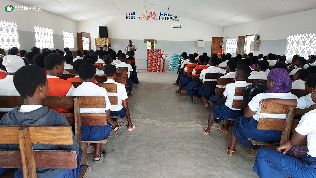 The Alumni Club, run by the Miral Welfare Foundation's Cote d'Ivoire operations, aims to motivate students to stay in school. Cote d'Ivoire has a high number of out-of-school youth who give up their studies after graduating from elementary school without going to secondary school due to financial burdens.